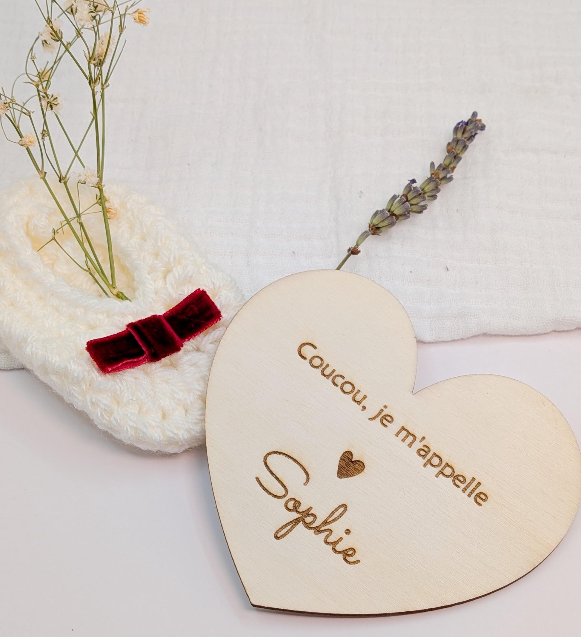 Cette carte de naissance en bois en forme de cœur est idéale pour marquer l’arrivée de votre bébé avec douceur. Fabriquée à la main, elle peut être personnalisée avec le prénom, la date de naissance ou un petit message. Une attention unique à offrir à vos proches ou à garder en souvenir.